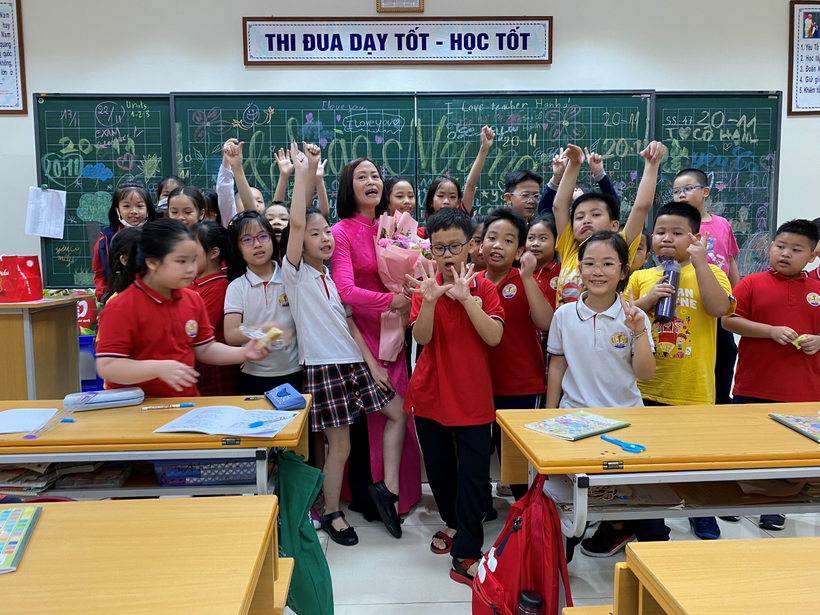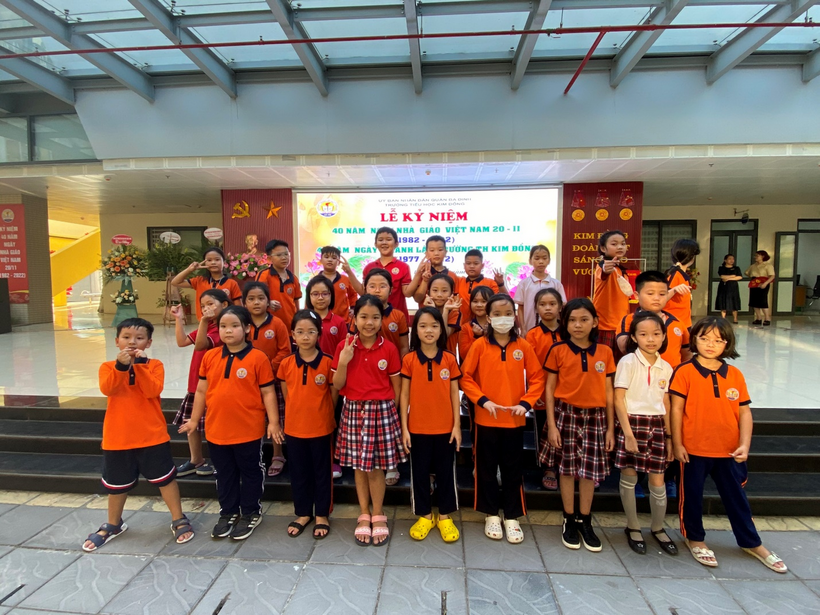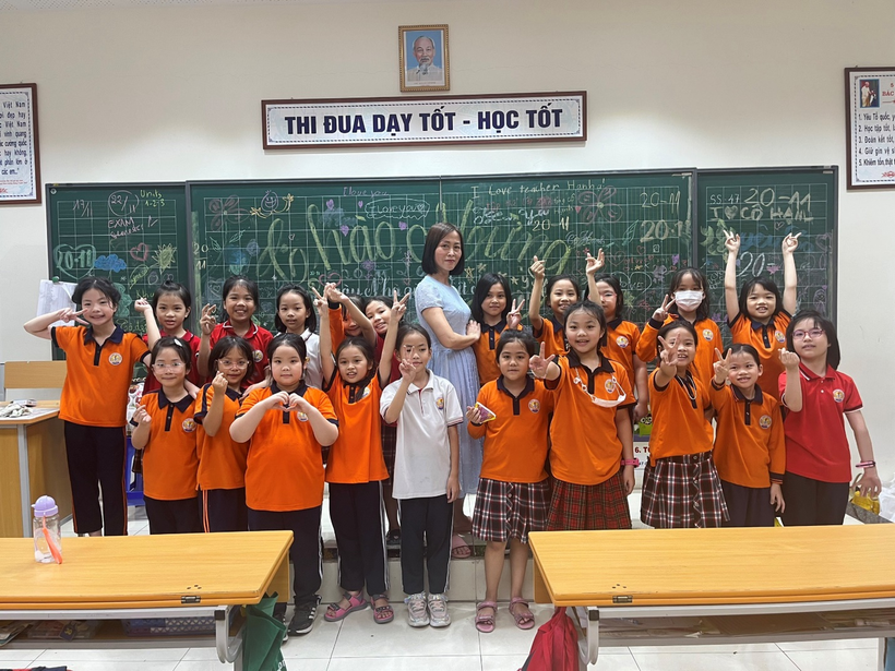Hân hoan chào mừng kỉ niệm ngày Nhà giáo Việt Nam của cô và trò lớp 3A7 trường Tiểu học Kim Đồng.