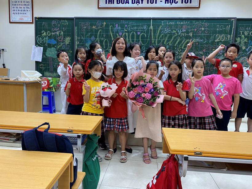 Để chuẩn bị cho buổi lễ, các bạn học sinh lớp 3A7 đã háo hức chuẩn bị tập các tiết mục văn nghệ từ trước. Bảng và lớp học cũng được tự tay các bạn trang trí từ chiều hôm trước.