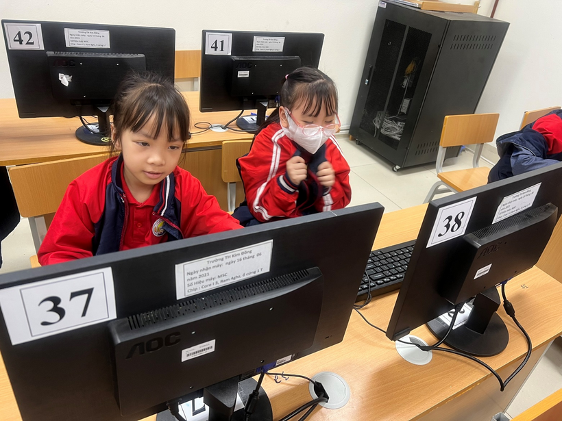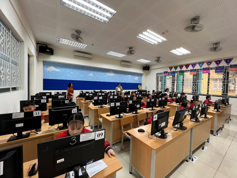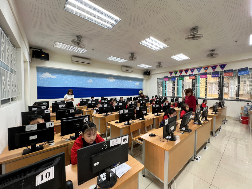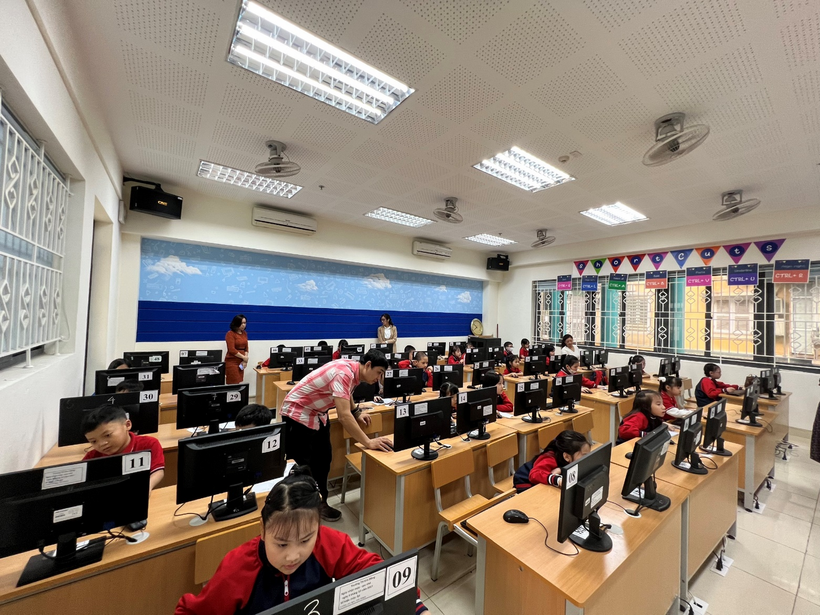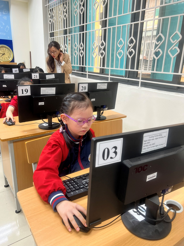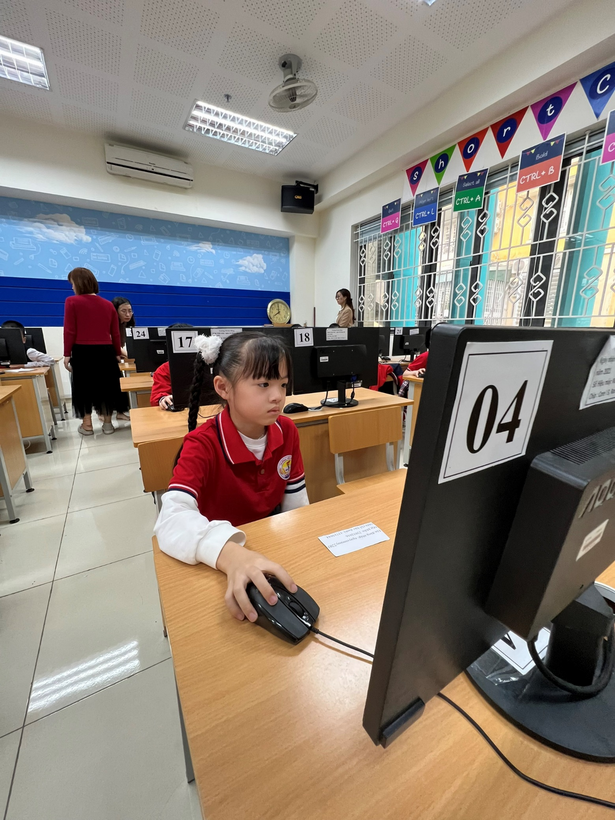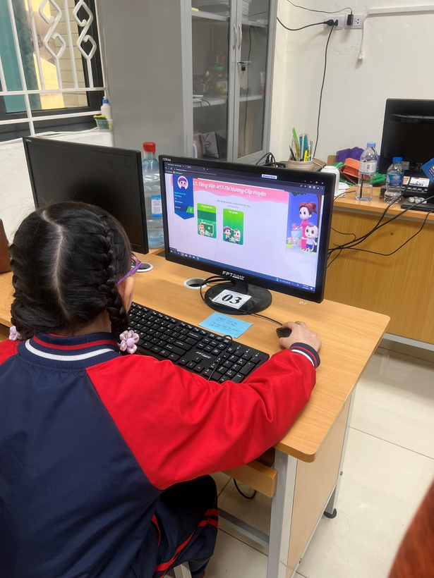 Chính nhờ sự chuẩn bị cẩn thận, chu đáo và nghiêm túc ấy đã giúp 140 học sinh nhà trường bình tĩnh, tự tin và hào hứng trải qua 2 bài thi: 1 bài game 100 điểm (10 câu) ; 1 bài trắc nghiệm 200 điểm (40 câu) với thời gian làm bài là 40 phút.