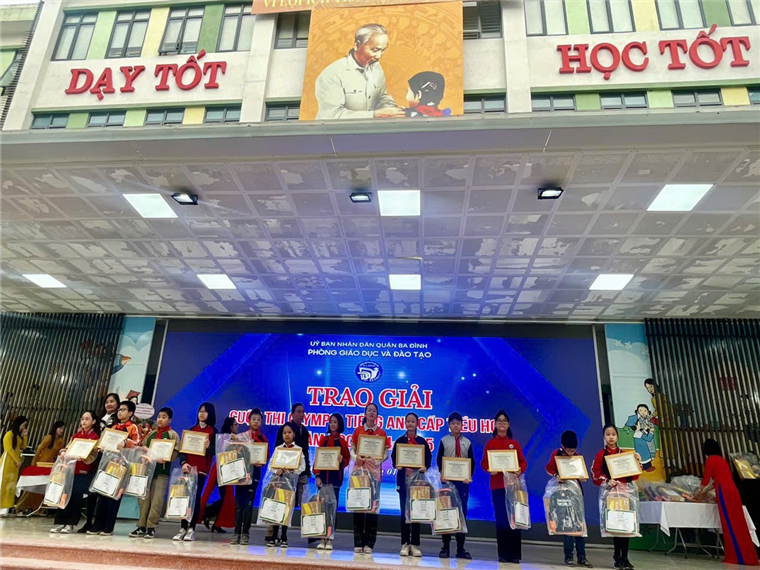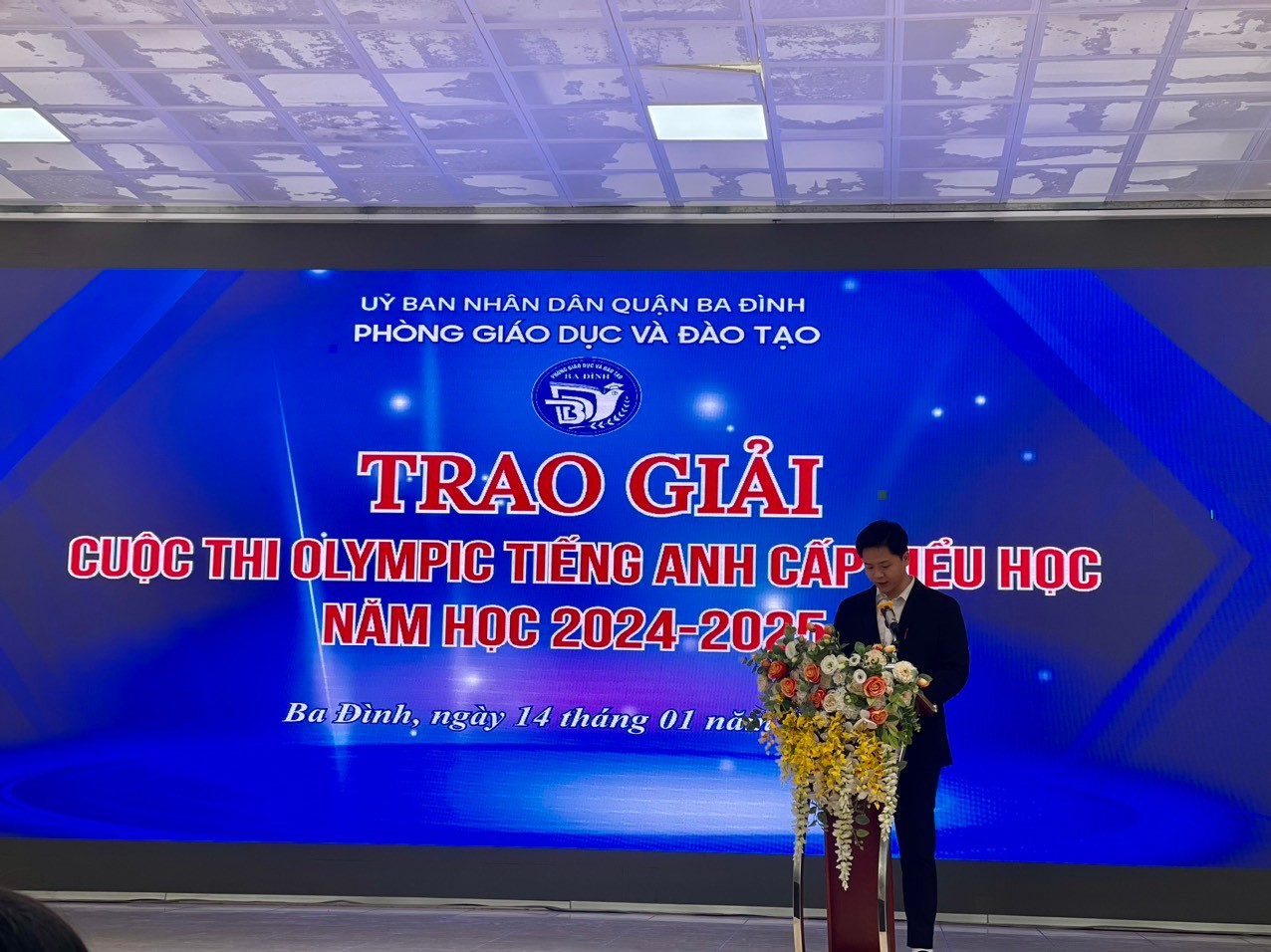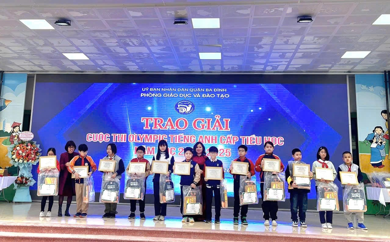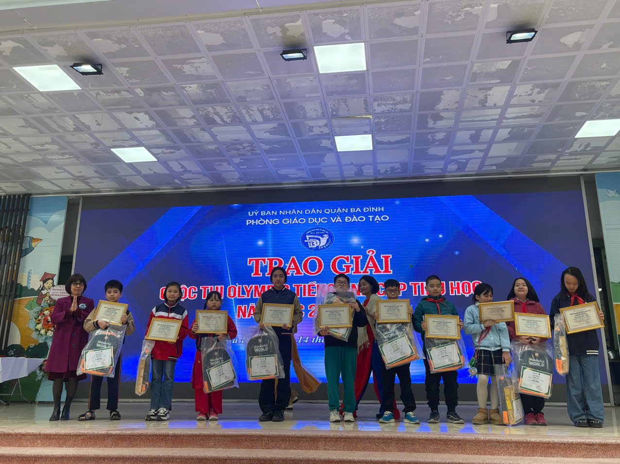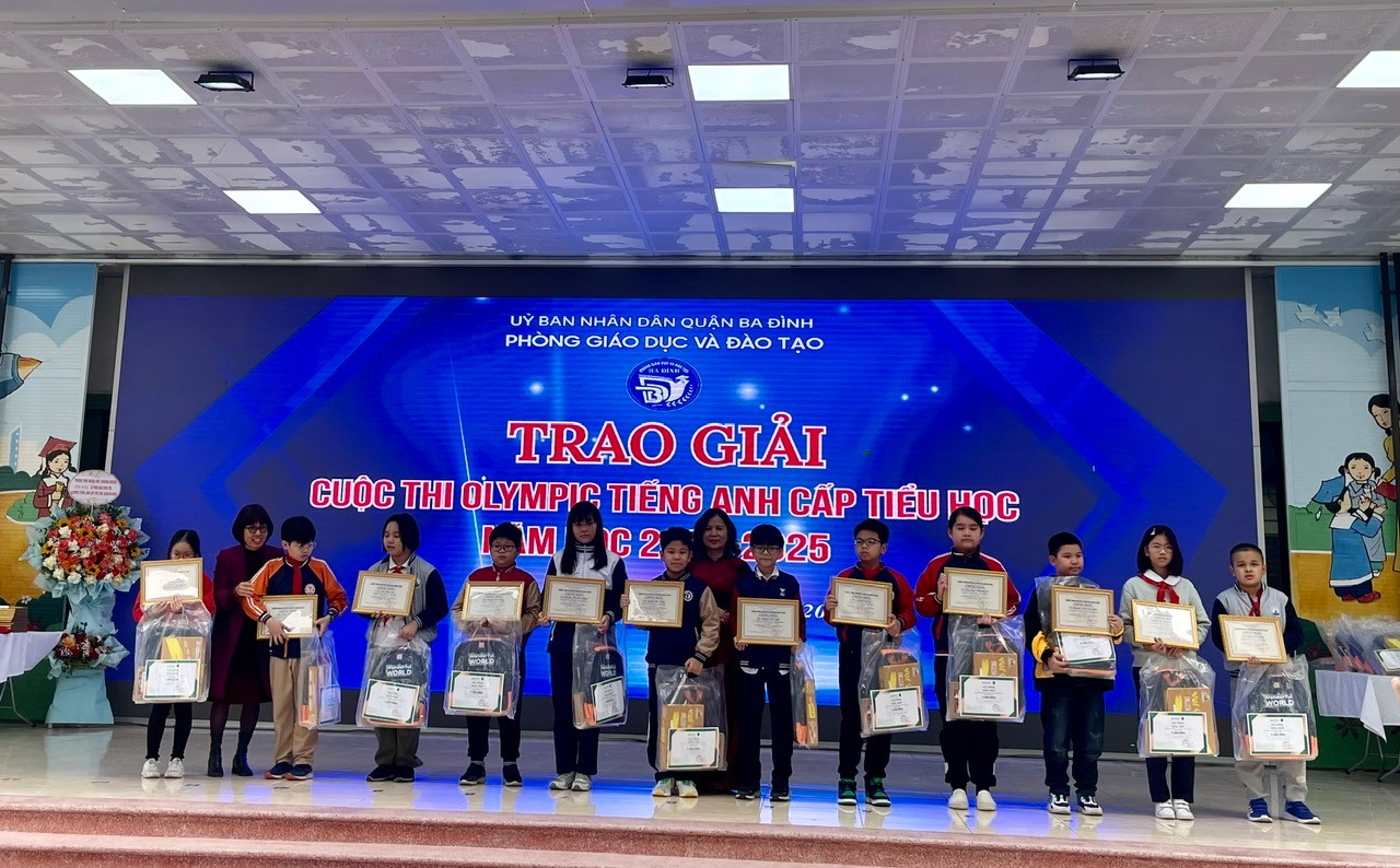 Cuộc thi Olympic Tiếng Anh cấp Tiểu học quận Ba Đình năm học 2024-2025 có 210 học sinh lớp 5 dự thi đến từ 20 trường Tiểu học trên địa bàn quận. Cuộc thi đã thực sự trở thành sân chơi bổ ích, nơi các em học sinh được thể hiện tài năng ngoại ngữ của mình cũng là cơ hội thể hiện bản thân và khơi dậy đam mê. Các câu hỏi thi được thiết kế bám sát Chương trình Giáo dục phổ thông 2018, tập trung vào 4 chủ đề quen thuộc: “Me and My Friends”, “Me and My School”, “Me and My Family” và “Me and the World Around” với các dạng thức hỏi đa dạng, giúp đánh giá và lựa chọn học sinh đạt giải và dự thi cấp Thành phố một cách toàn diện.