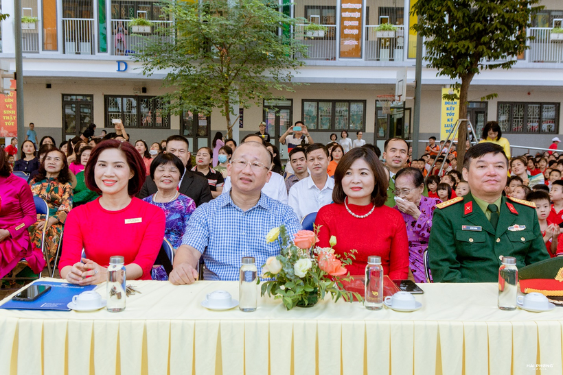 Lãnh đạo các cấp tới dự chung vui với nhà trường.