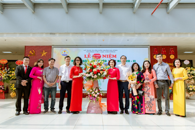 Niềm vui của ngày Nhà giáo Việt Nam năm nay còn nhân lên gấp bội vì tập thể nhà trường đồng tổ chức Kỷ niệm 40 năm ngày Nhà giáo Việt Nam với Lễ Kỷ niệm 45 năm ngày thành lập trường Tiểu học Kim Đồng ( 1977- 2022 ). Tề tựu dưới mái nhà chung Kim Đồng hôm nay, không chỉ có các cấp lãnh đạo, các quý vị đại biểu, toàn thể cán bộ giáo viên, công nhân viên và học sinh trong trường mà còn là buổi gặp mặt của các thầy cô giáo lão thành, của các bậc phụ huynh và học sinh của nhiều thế hệ trước của nhà trường. Sự hiện diện của những gương mặt rạng ngời, những nụ cười trong vắt, ánh mắt niềm vui hân hoan, những tâm hồn đầy ắp kỉ niệm ấy thực sự là bó hoa xinh đẹp nhất, rực rỡ nhất và sống động nhất của “vườn ươm Kim Đồng”.
