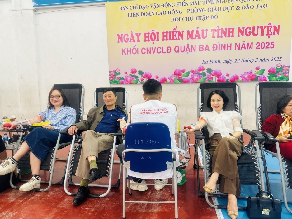 Hưởng ứng lời kêu gọi của LĐLĐ Quận, BCH Công đoàn trường Tiểu học Kim Đồng đã thông báo đến toàn thể các cán bộ, giáo viên, nhân viên của trường. Ngày 22/3, tại trường Tiểu học Ngọc Khánh, 25 giáo viên, nhân viên của trường Tiểu học Kim Đồng đã đến từ sớm để tham gia hiến máu nhân đạo.