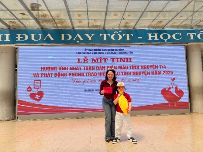Cả mẹ và con cùng tham gia hiến máu nhân đạo