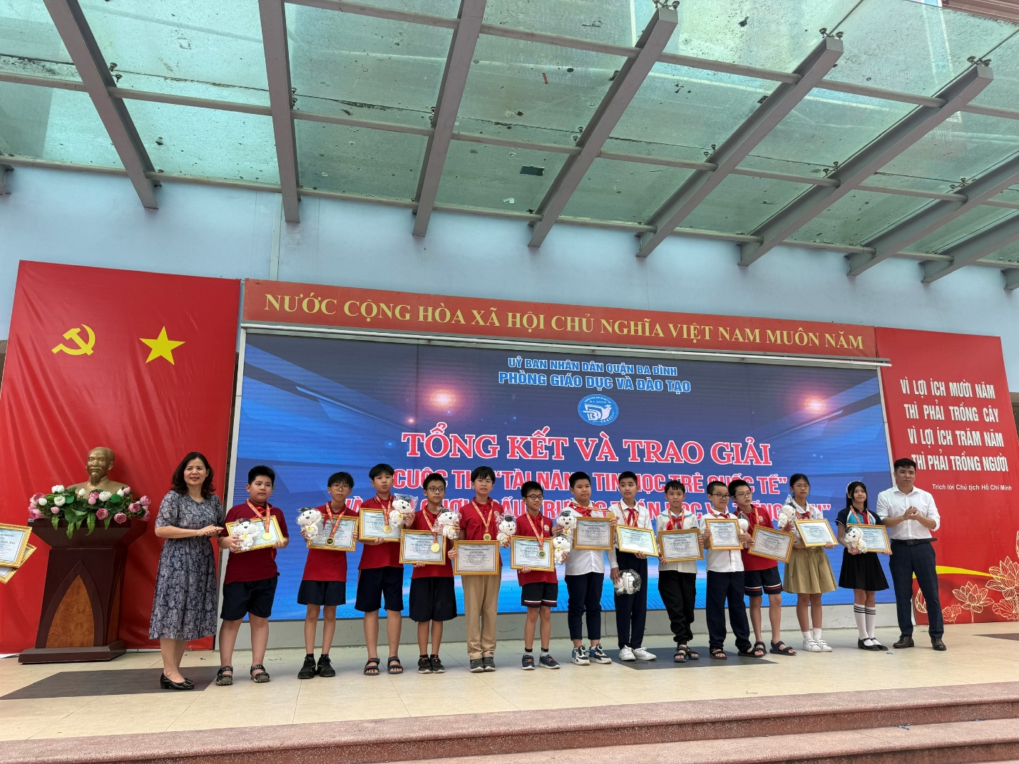 Học sinh khối lớp 5 nhận giải Vàng Đấu trường Toán học và Tiếng Anh cấp Quận