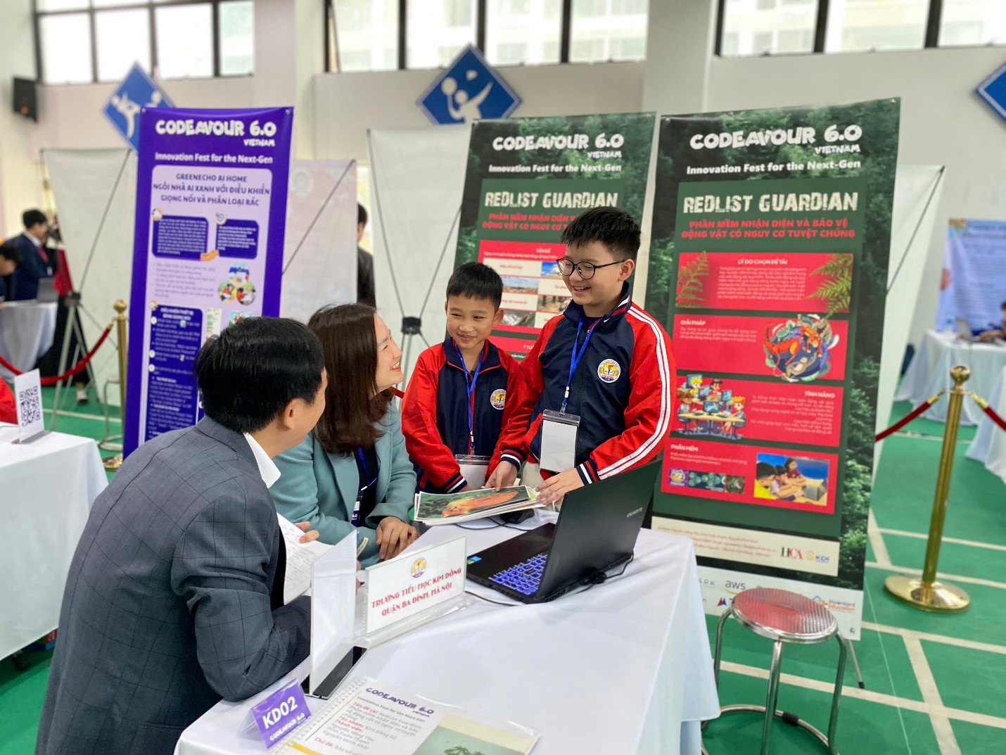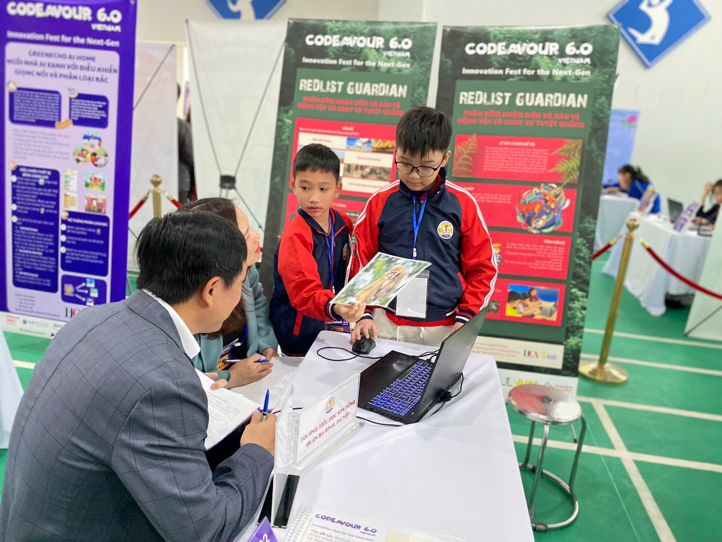 Giải Thuyết trình Ấn tượng – RedList Guardian – Phần mềm nhận diện và bảo vệ động vật có nguy cơ tuyệt chủn do nhóm học sinh Nguyễn Hồng Thu, Đinh Xuân Thanh, Nguyễn Minh Khôi thực hiện