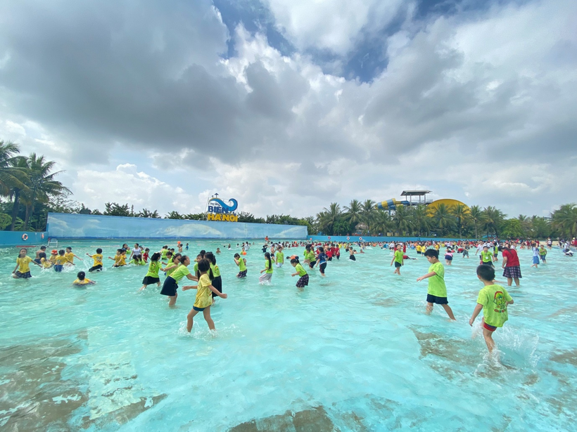 Các em vui chơi hết mình, thoả thích nô đùa trên biển nhân tạo