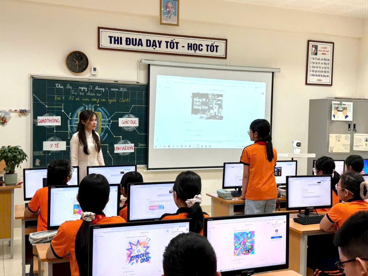 Trong bối cảnh giáo dục đang chuyển mình mạnh mẽ theo định hướng phát triển năng lực số cho học sinh, việc đưa trí tuệ nhân tạo (AI) vào giảng dạy không còn là câu chuyện thử nghiệm, mà đang dần trở thành một xu thế tất yếu. Tại phòng Tin học 2, một tiết học đặc biệt với chủ đề “AI và cuộc sống con người” đã được tổ chức cho học sinh lớp 5A6, để lại nhiều dấu ấn sâu sắc trong lòng học sinh và giáo viên.