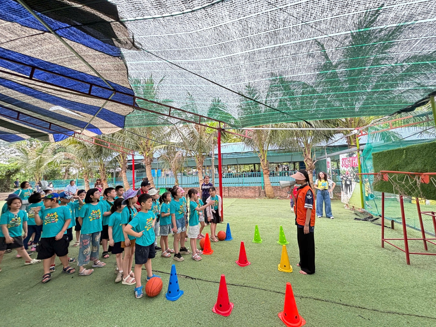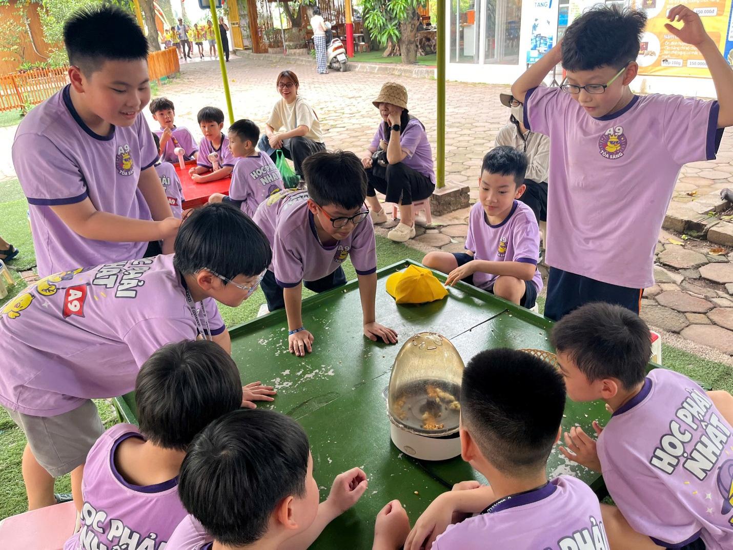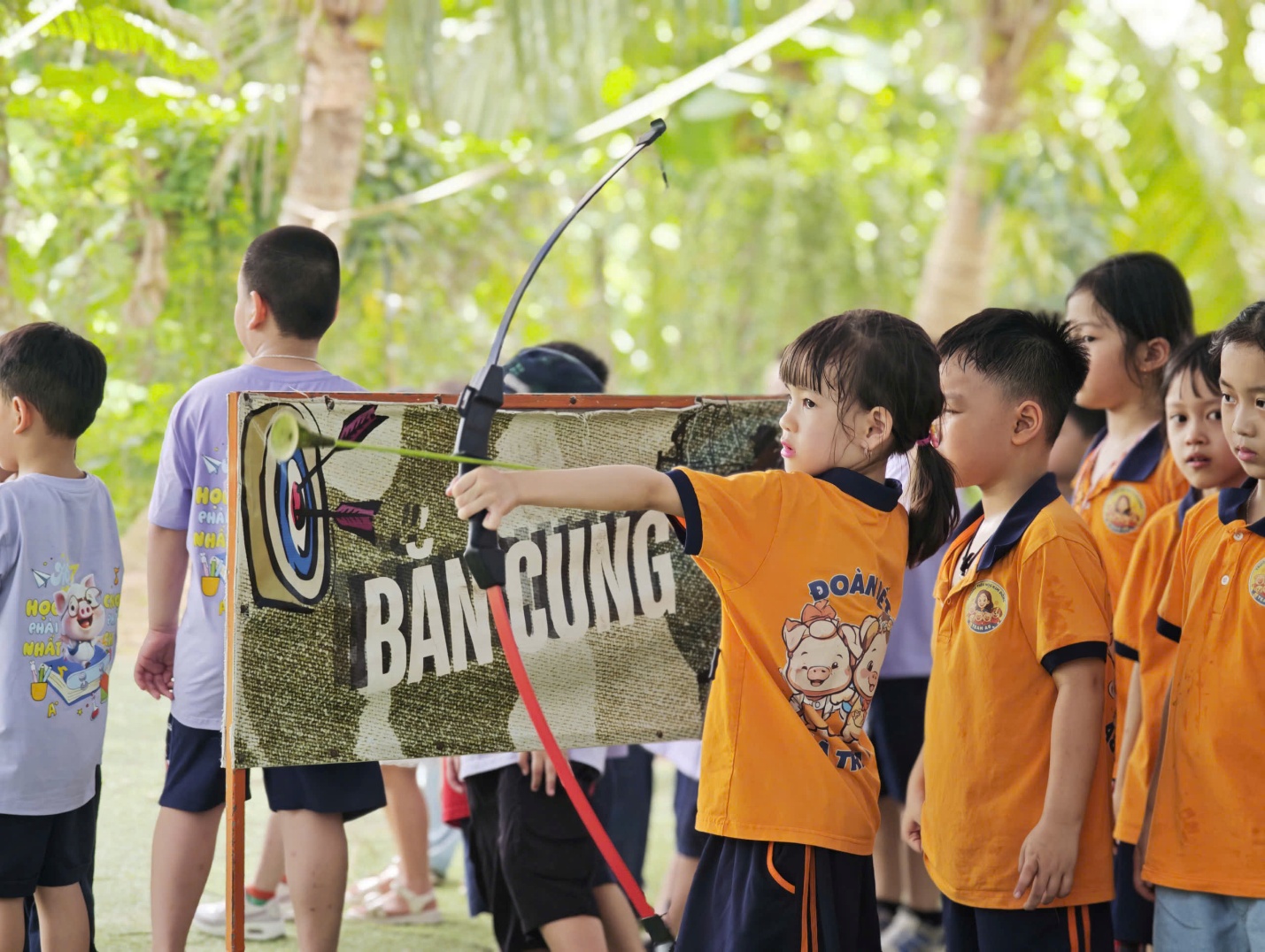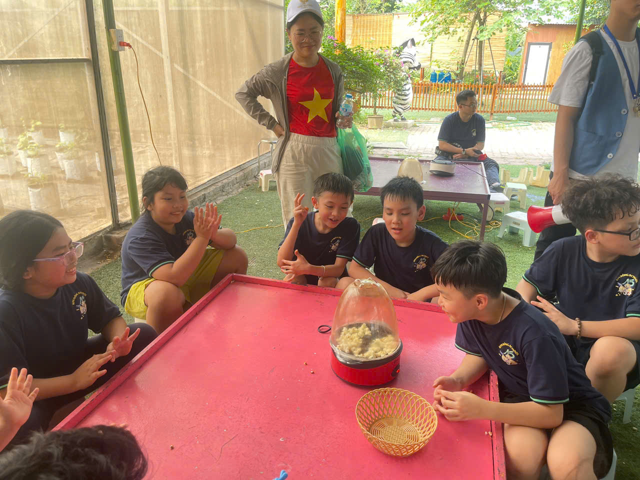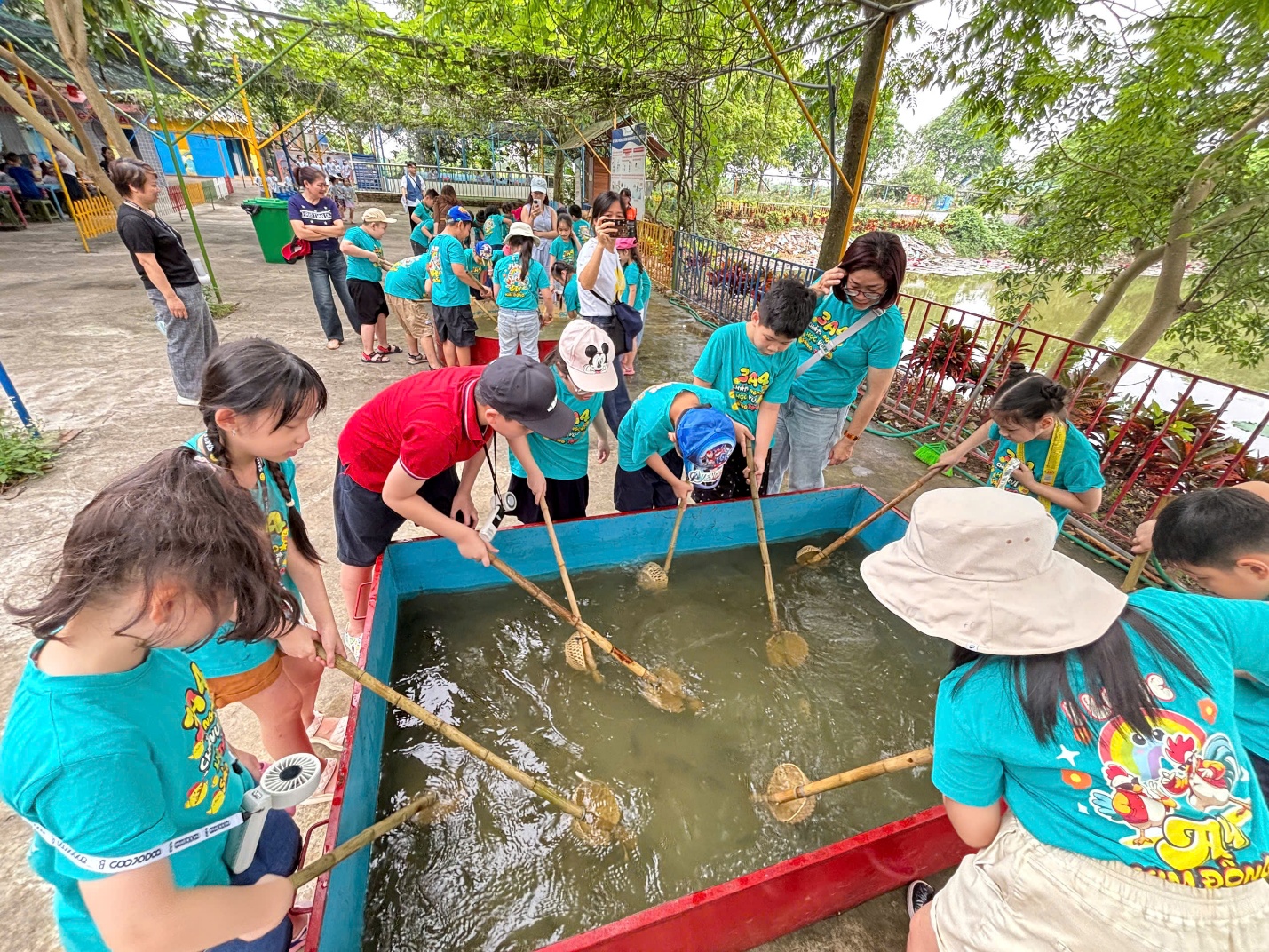 Ngay từ những giây phút đầu tiên đặt chân đến trang trại, không gian xanh mát và không khí trong lành đã nhanh chóng xua tan sự bỡ ngỡ của các "chiến binh nhí". Dưới sự hướng dẫn tận tình của các thầy cô giáo và các anh chị hướng dẫn viên, các em đã có một ngày hoạt động hết công suất với những trải nghiệm khó quên.