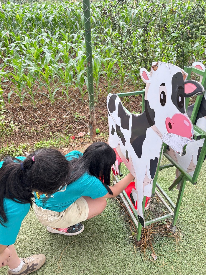 Bên cạnh đó, hóa thân thành "nông dân nhí" trải nghiệm vắt sữa bò và học cách xử lý tình huống khẩn cấp tại Trạm kỹ năng thoát hiểm đã trang bị cho các em những kỹ năng sinh tồn và vốn sống vô cùng thiết thực.