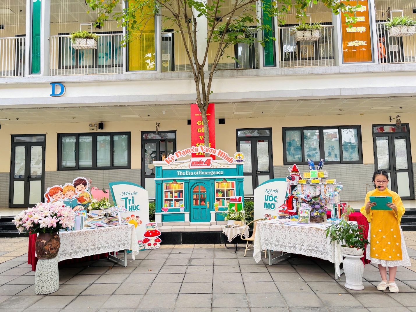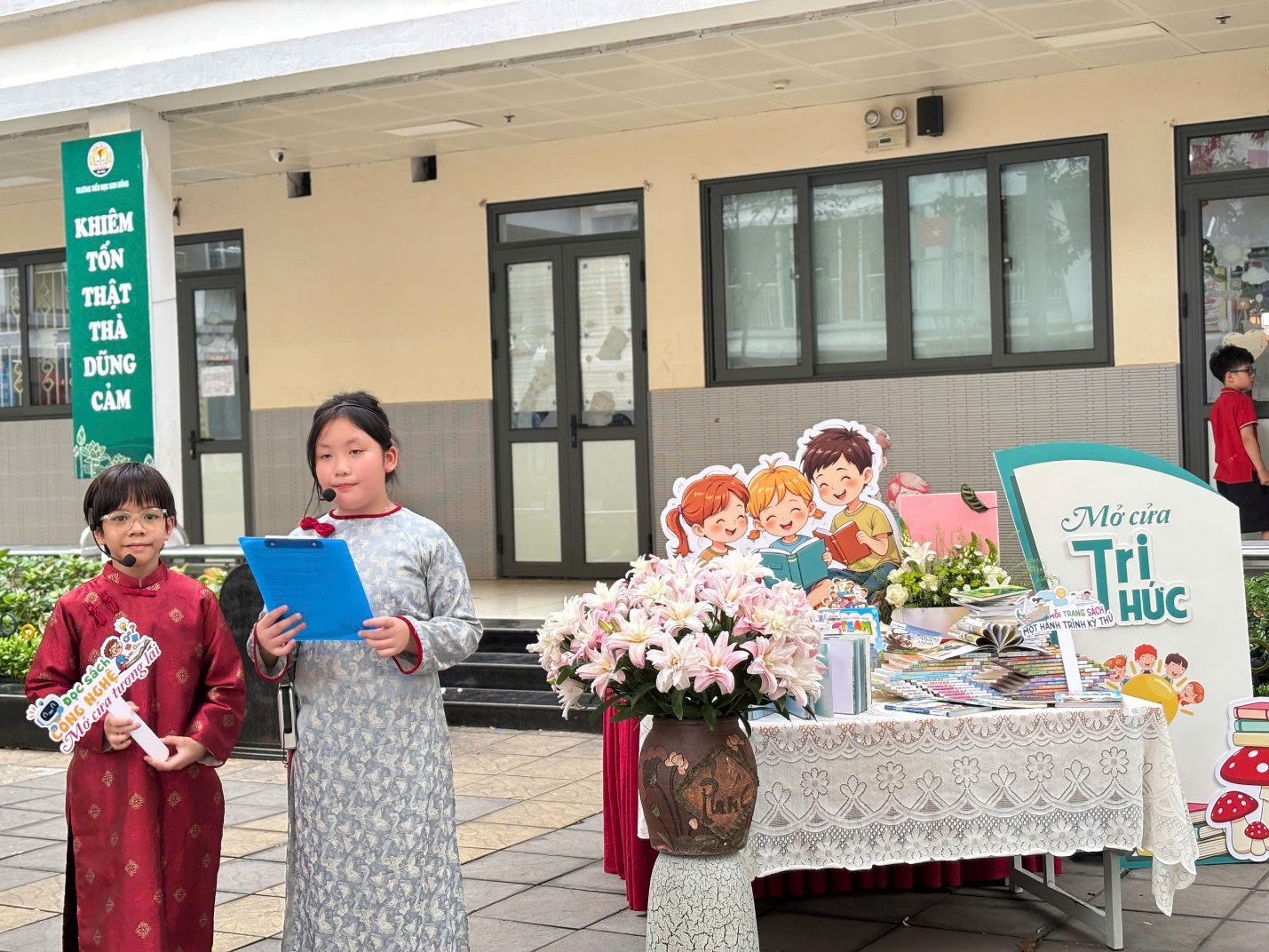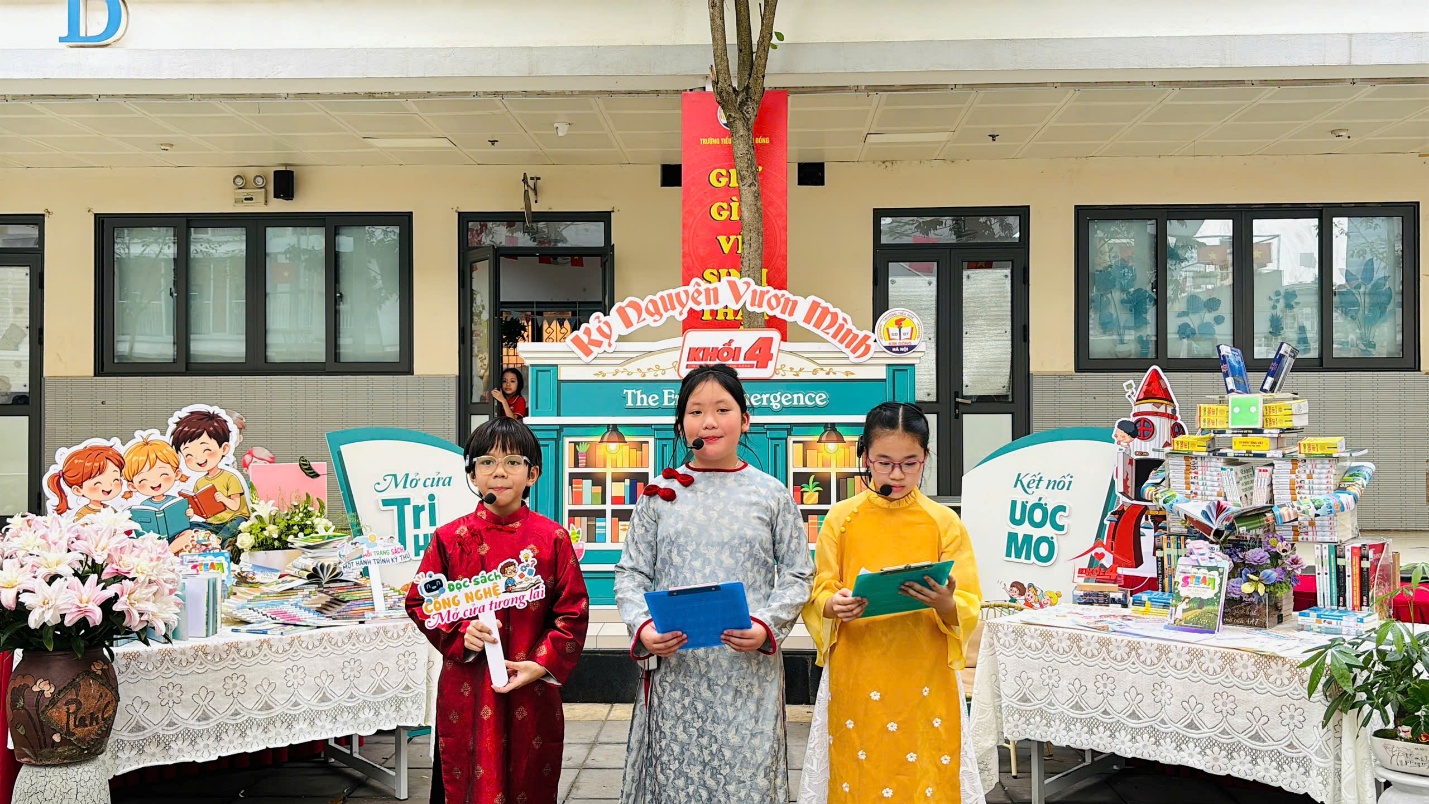 Điểm nhấn rực rỡ nhất của ngày hội chính là cuộc thi giới thiệu sách mang tên “Thế giới trong từng trang sách”. Tại đây, những câu chuyện vốn nằm yên trên trang giấy đã được thổi hồn đầy sống động thông qua hình thức sân khấu hóa. Khán giả đã không khỏi trầm trồ trước sự kết hợp ăn ý giữa các "diễn viên nhí" và các cô giáo từ mỗi khối lớp. Những nhân vật lịch sử hào hùng, những bài học đạo đức ý nghĩa đã bước ra từ trang sách, tạo nên những màn trình diễn nghệ thuật đầy cảm xúc và sáng tạo.