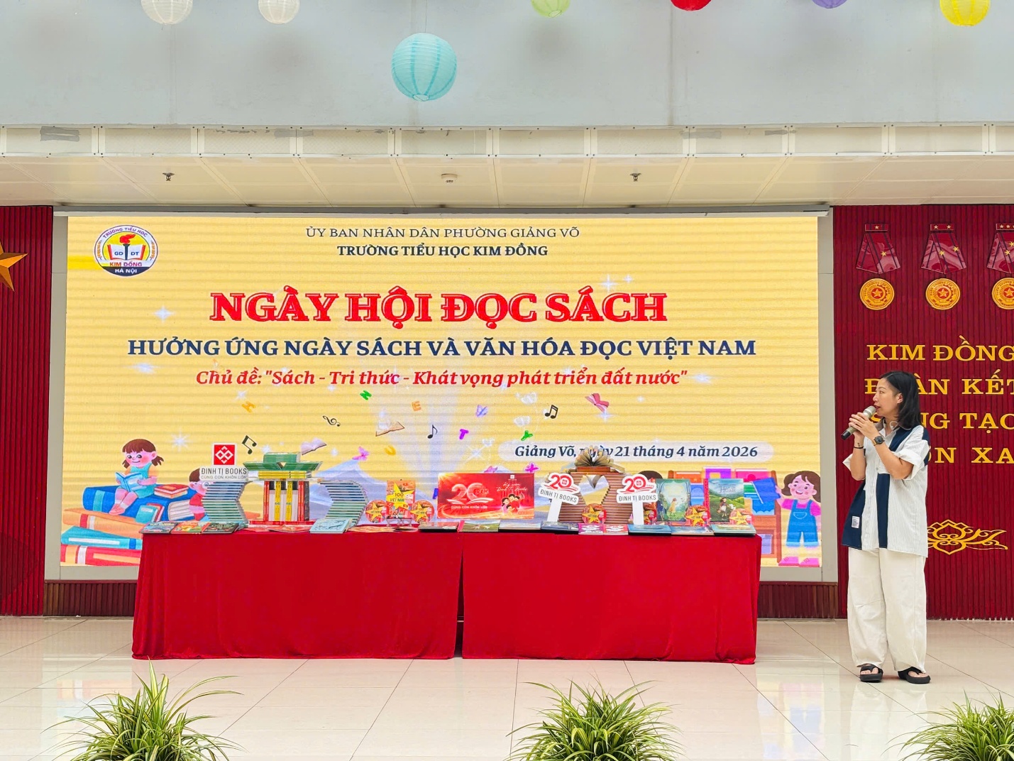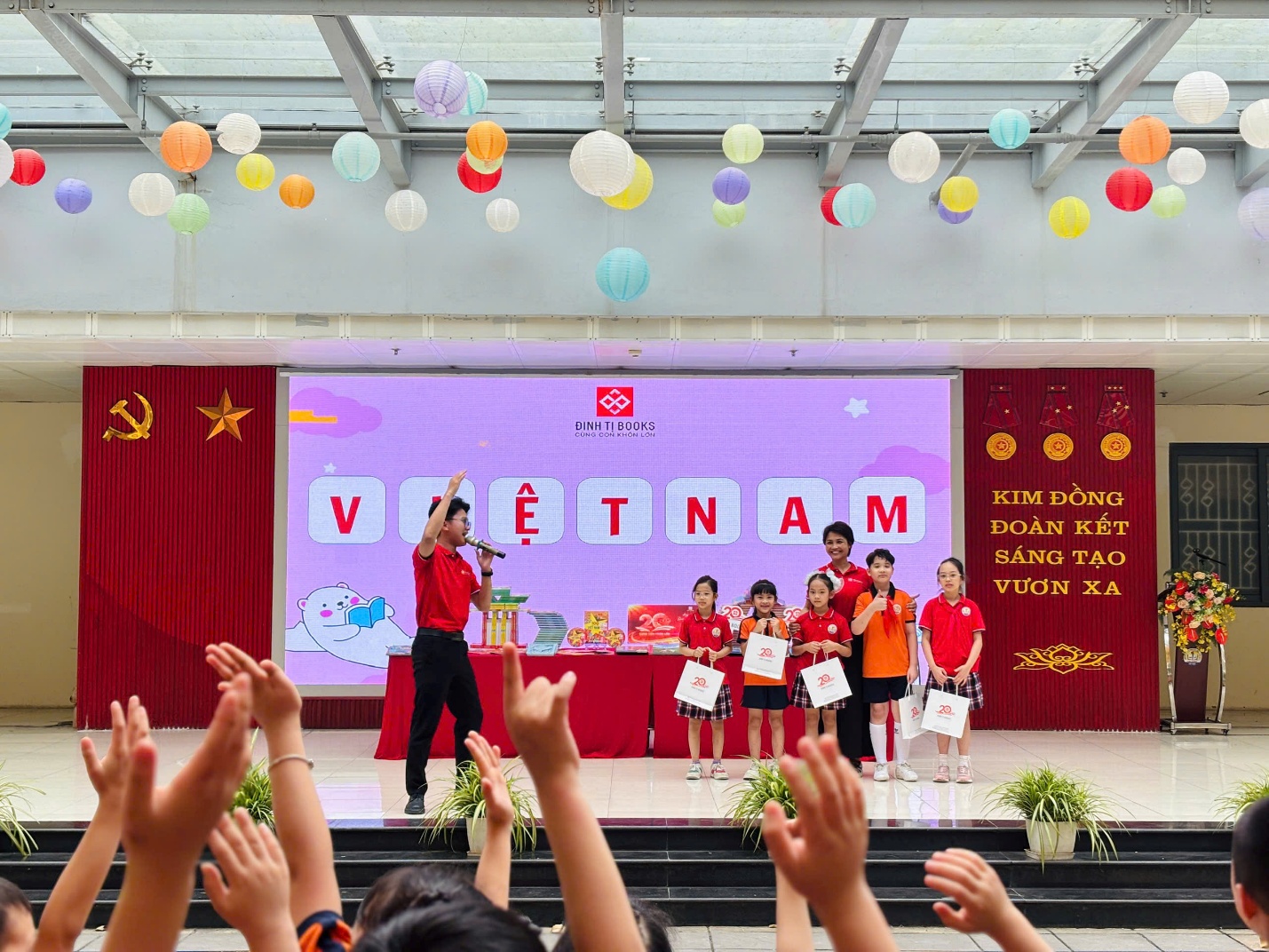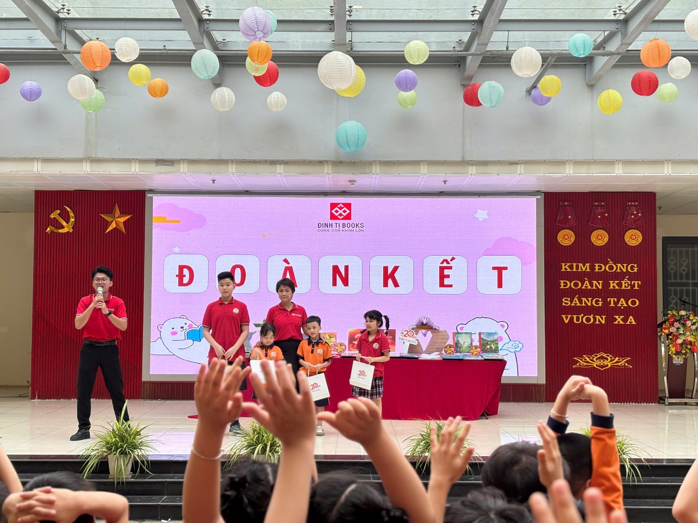 Đặc biệt, ngày hội năm nay thêm phần hào hứng nhờ sự đồng hành của Công ty sách Đinh Tỵ. Các bạn nhỏ đã có những giây phút "vừa học vừa chơi" cực kỳ sảng khoái với các trò chơi mini game tìm hiểu về lịch sử ngày sách cũng như khám phá những đầu sách mới hấp dẫn. Những phần quà xinh xắn được trao tay không chỉ là phần thưởng, mà còn là lời khích lệ các em tiếp tục khám phá thế giới rộng lớn qua từng trang sách.
